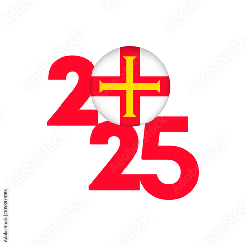 Obraz premium 2025 banner with Guernsey flag inside. Vector illustration.