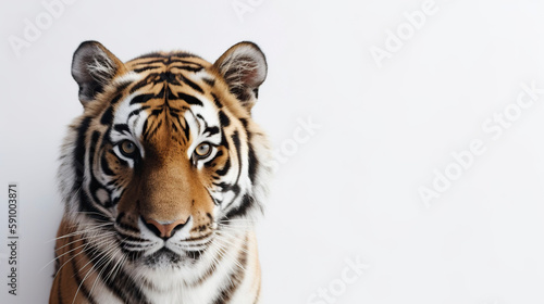 Naklejka premium Banner with tiger on a white background. Generative AI.