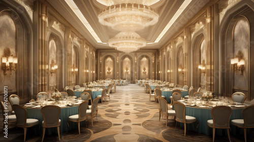 © Patcharee, Naklejka premium Banquet hall Multipurpose room in a luxury hotel, beautifully decorated.