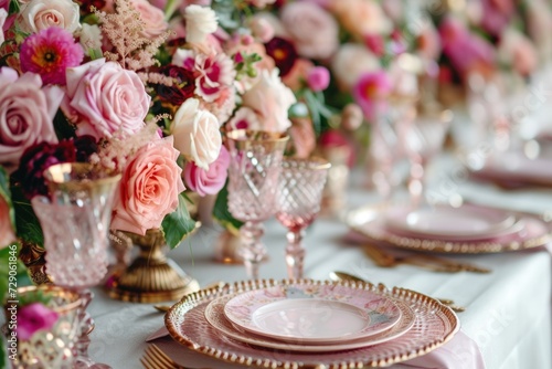 Fototapeta premium Banquet luxury wedding with flowers decor on the table