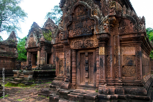 Naklejka premium Banteay Srei is built largely of red sandstone and is a 10th-century...