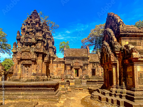 Naklejka premium Banteay Srei Temple was built in honor of the god Shiva, of the Khmer...