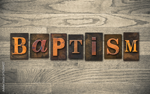 © enterlinedesign, Naklejka premium Baptism Wooden Letterpress Concept