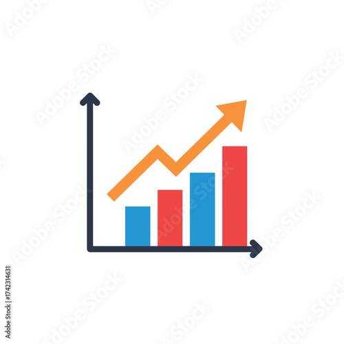 Fototapeta premium Bar chart with upward trending line for data analysis