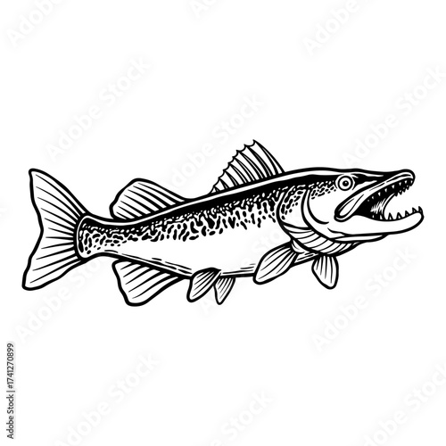 © Fadil, Fototapeta premium Baracuda Vector Black And white