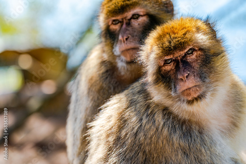 Fototapeta premium Barbary Macaque (Macaca Sylvanus) apes. Gibraltar, United Kingdom. Selective focus