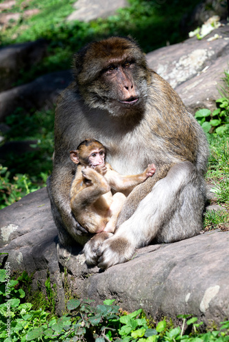 © Simonetta, Fototapeta premium Barbary Macaque Mother and Baby