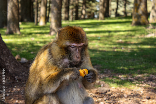 © georgigerdzhikov, Fototapeta premium Barbary macaque sitting on the ground