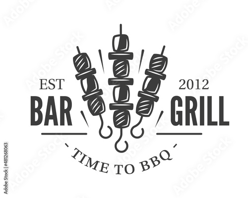 © MegaShabanov, Obraz premium Barbecue kebab logo isolated on white background. BBQ concept. Vector illustration