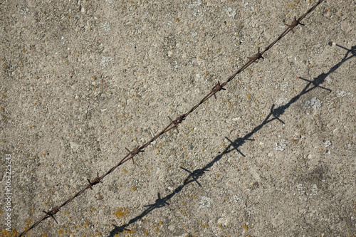 Fototapeta premium barbed wire and its shadow against a concrete wall