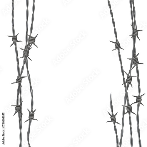 © Shoukhin, Naklejka premium Barbed wire fence with sharp spikes isolated on transparent background