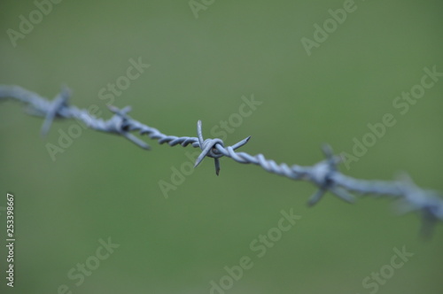 © aerdemphoto, Obraz premium barbed wire on blue background