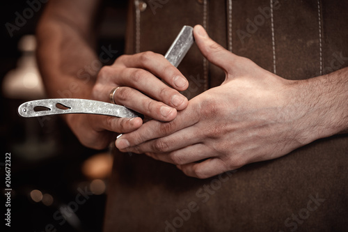 © Rychko Yevhen, Obraz premium barber hand and blade