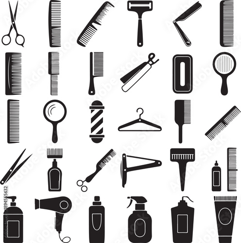 © MstHazara, Obraz premium Barber Shop Icon Set (Bold outline version)
