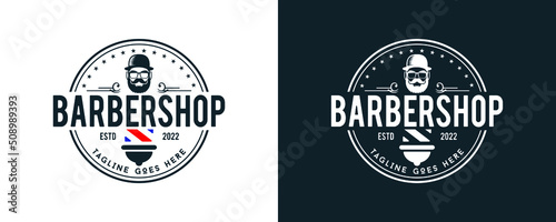 Fototapeta premium Barber Shop labels, banner, logo vector template