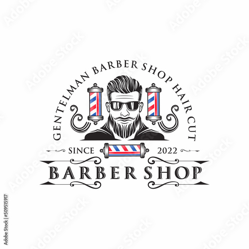 Obraz premium Barber shop vintage logo design illustration