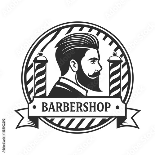 © Nasir, Obraz premium Barbershop Emblem With Barber Pole And Man Portrait