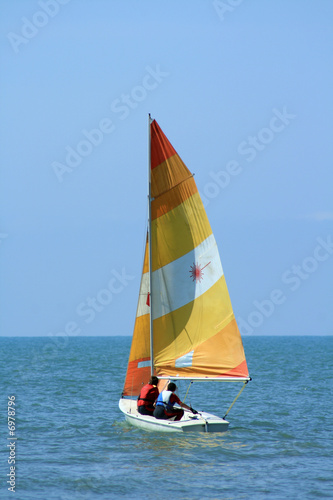 © Silvia Ottaviano, Naklejka premium barca con vela gialla e arancione 2