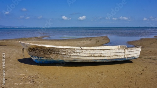 © Viajarruteando, Fototapeta premium Barca en la desembocadura del Ebro