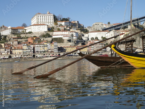 Obraz premium Barcazas y palacio episcopal de Oporto
