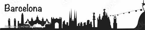 Fototapeta premium Barcelona city skyline vector, black silhouette
