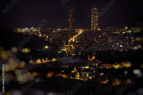 © alexandrulogel, Fototapeta premium Barcelona skyline at night