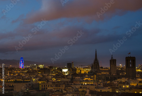 © Mariana Ianovska, Obraz premium Barcelona skyline panorama at night