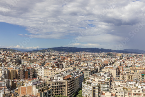 Fototapeta premium Barcelona skyline with hills and dark clouds coming from the right