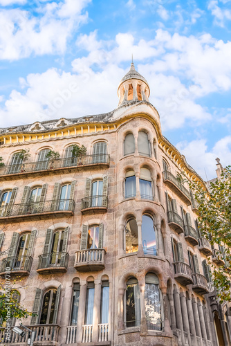© ioanna_alexa, Fototapeta premium Barcelona, Spain - November 26, 2021: Facade of the Casa Sayrach building by Manuel Sayrach on Avinguda Diagonal in Barcelona. Architectural masterpiece in the style of the last modernista, 1918