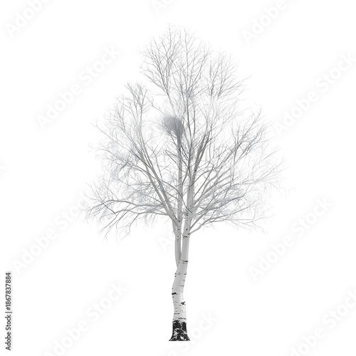© Nutthaphoom, Fototapeta premium Bare birch tree isolated on transparent background in black and white Generative AI