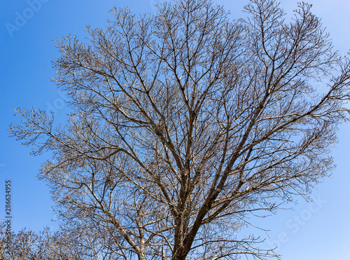 © schankz, Fototapeta premium Bare branches on a tree against a blue sky