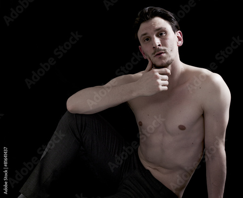 Fototapeta premium Bare-chested man portrait sitting and looking