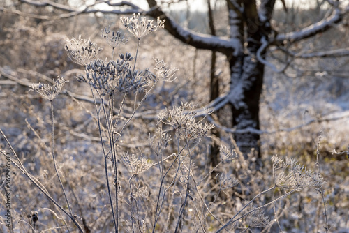 Obraz premium Bare deciduous trees in the forest in winter