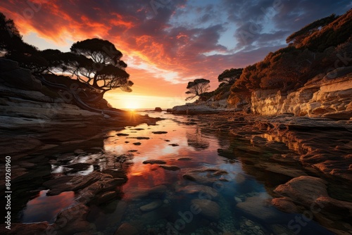 © JONATAS, Fototapeta premium Bare Island Reserve Nature and History in Harmony, generative IA