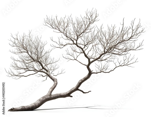 © Teeranan, Obraz premium Bare Leaning Tree Isolated on White