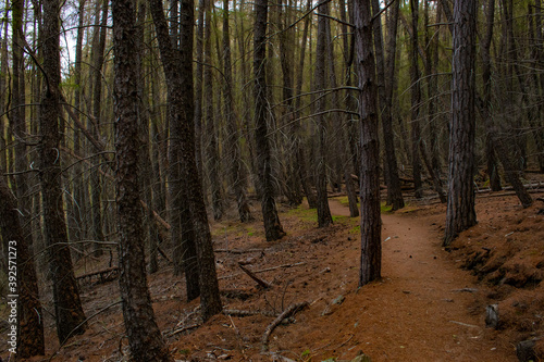 © Lance, Obraz premium bare pine tree scattered through empty forest