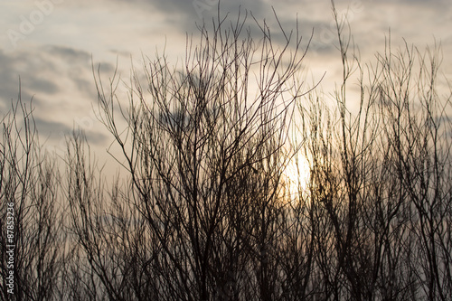 Obraz premium bare tree branches at dawn sun