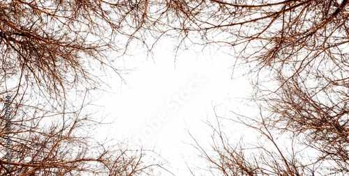 © BerkahStock, Obraz premium Bare tree branches forming a frame against a bright sky.