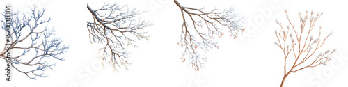 © R Studio, Obraz premium Bare Tree Branches on White Background, Winter