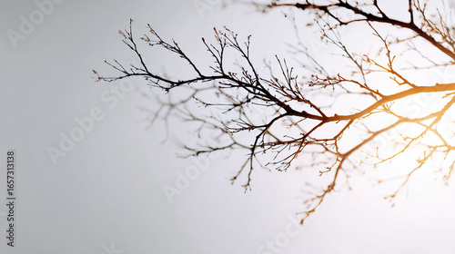 © Redwana, Obraz premium Bare Tree Branches with Soft Sunlight on Transparent Background