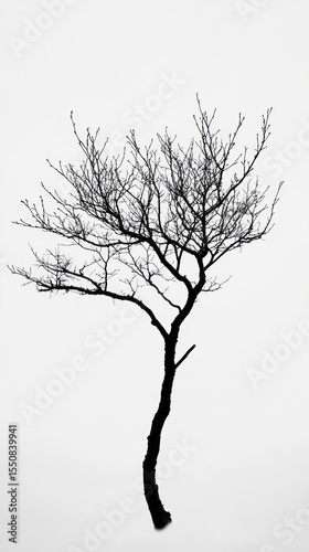 © RaneshaSky, Obraz premium Bare tree silhouette against a light background