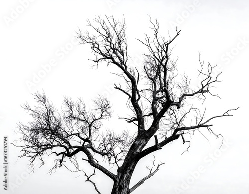 Obraz premium Bare tree silhouette against white sky