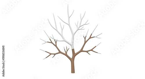 Obraz premium Bare Tree with Half White and Half Brown Branches