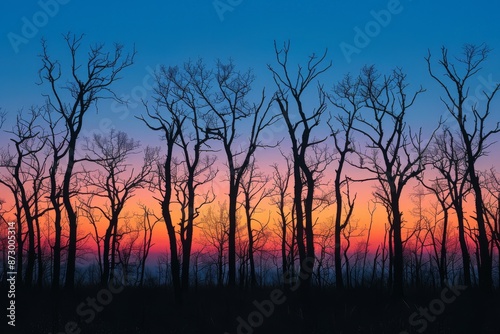 © Sandu, Obraz premium Bare Trees Against Vibrant Sunset