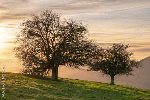 © Néstor MN, Fototapeta premium Bare trees at winter sunset