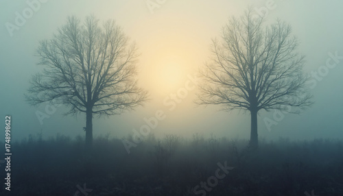 Fototapeta premium Bare Trees in Fog with Soft Light