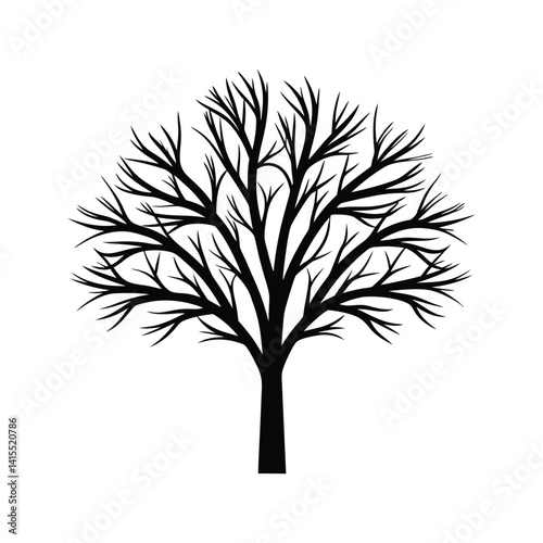 © InsidePhotoshop, Obraz premium Bare winter tree icon silhouette vector with white background