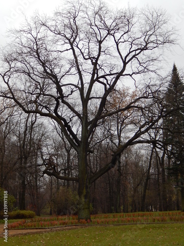 © HelenkaNNN, Obraz premium Bare, without leaves, tree branches against the sky