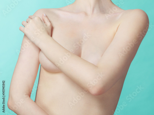 © anetlanda, Fototapeta premium Bare woman covering her breast with hands