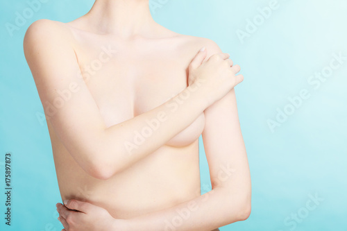 © anetlanda, Fototapeta premium Bare woman covering her breast with hands